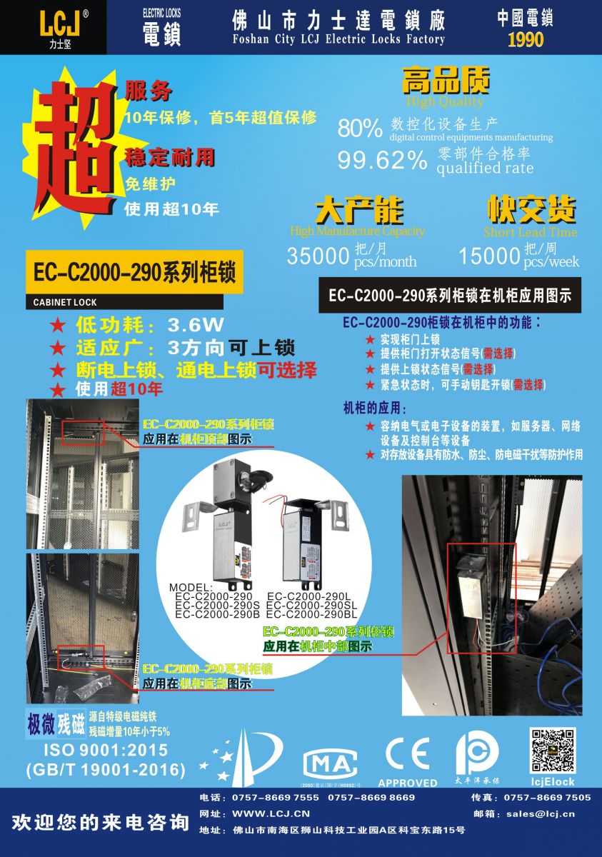 EC-C系列柜锁,安装于机房中的机柜,授权管理服务器,安全可靠!