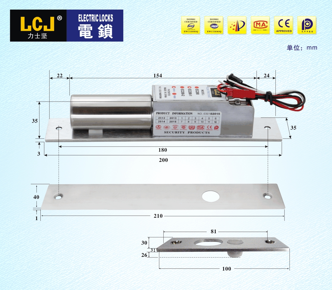 EC电插锁是按照《电插锁》标准自主设计开发,拥有实用新型、外观等专利。