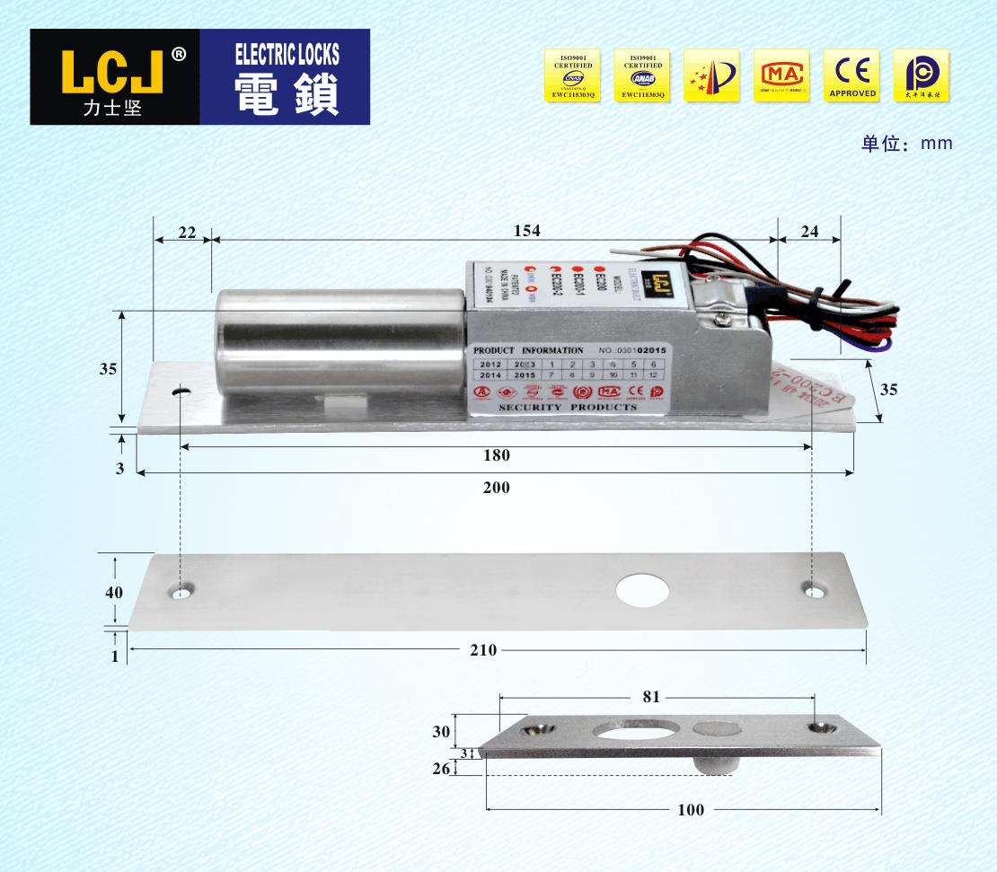 EC电插锁是按照《电插锁》标准自主设计开发,拥有实用新型、外观等专利。