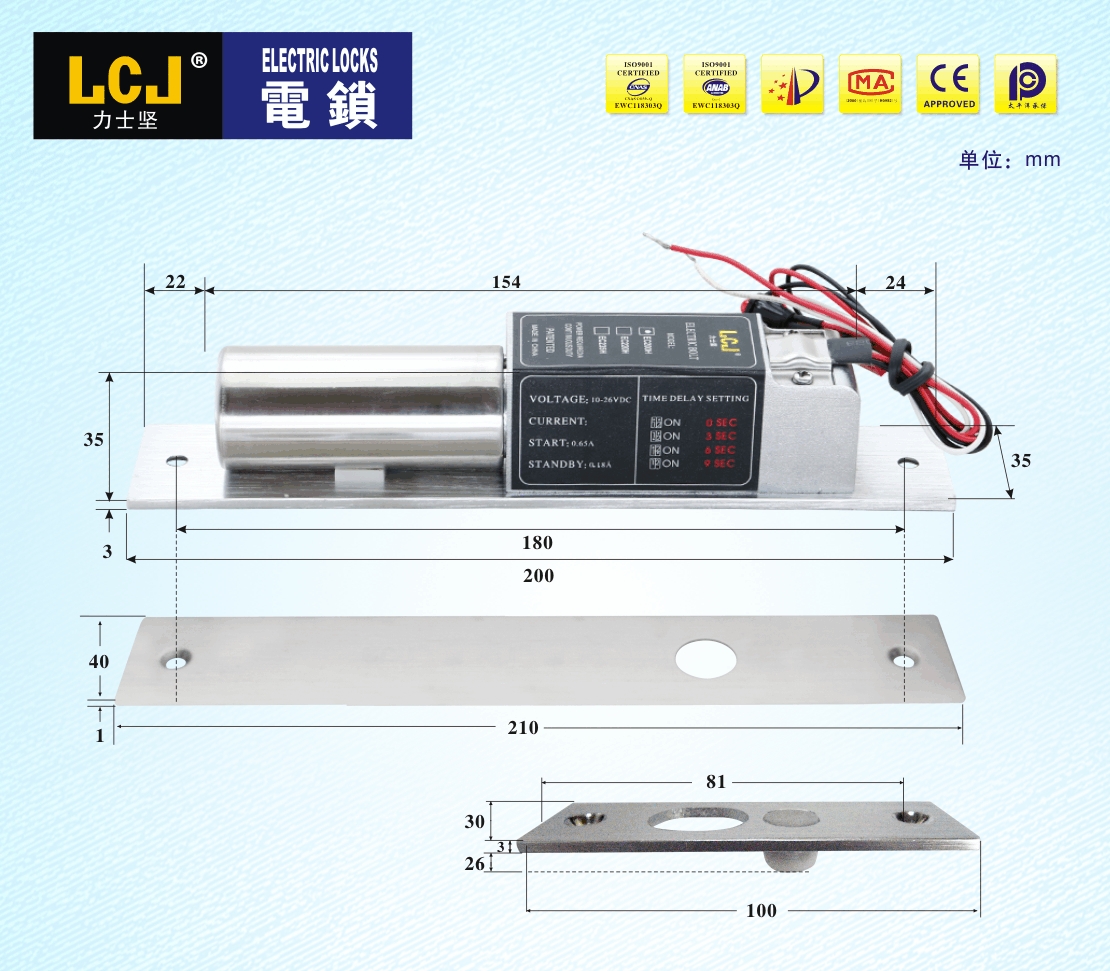 EC电插锁是按照《电插锁》标准自主设计开发,拥有实用新型、外观等专利。